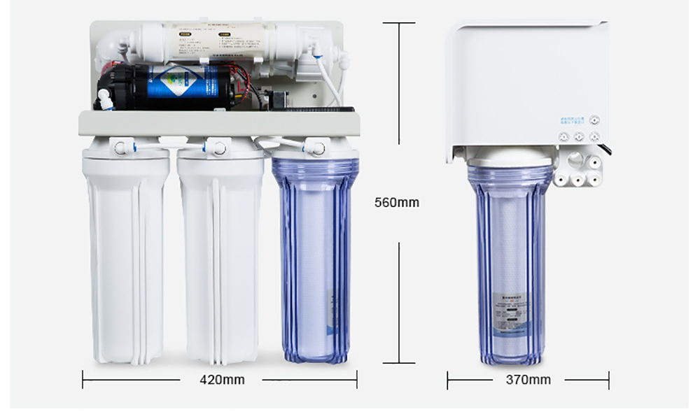 Accessories: 75G RO membrane, 10 inch filter cartridge,3.2G water tank, pump,wrench,valve,instruction manual.